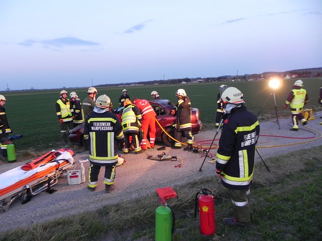„Verkehrsunfall mit zwei eingeklemmten Personen“ – so lautete die Übungsannahme der Freiwilligen Feuerwehr Wampersdorf am Abend des 03. April 2012.