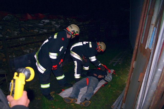 - Innenangriff inkl. Personenrettung eines Truppes mittels umluftunabhängigen Atemschutz unter Vornahme einer C-Löschleitung (Hohlstrahlrohr),