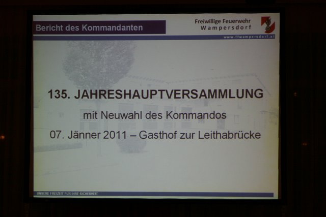 Am Freitag, dem 7. Jänner 2011 fand die 135. Mitgliederversammlung der Freiwilligen Feuerwehr Wampersdorf im Gasthaus zur Leithabrücke statt, welche ganz im Zeichen eines Generationenwechsels stand.