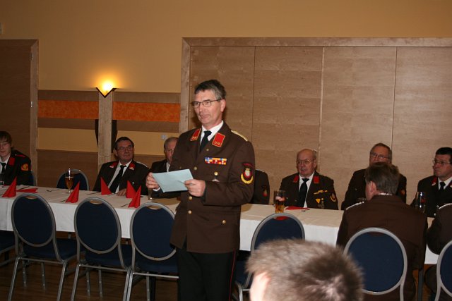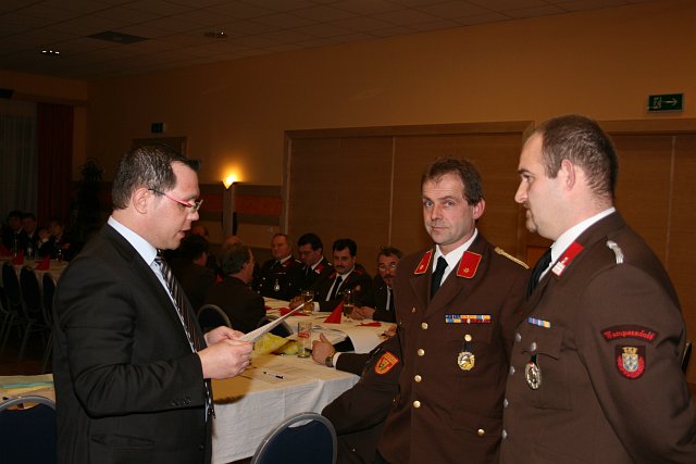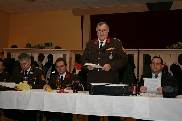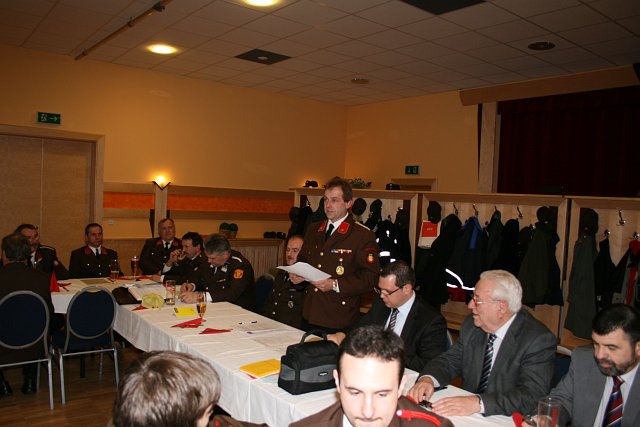 Nach den Berichten der einzelnen Fachchargen und Sachbearbeiter wurde der Vorsitz der Mitgliederversammlung an Bürgermeister Sabbata-Valteiner übergeben. Er bedankte sich namens der Marktgemeinde Pottendorf beim scheidenden Kommando für die erfolgreiche Zusammenarbeit. Er blickte auf die letzte fünfjährige Funktionsperiode zurück und hob die in dieser Zeit erfolgreich durchgeführten Projekte, wie Auslieferung des RLFA 2000, Neubau des Wampersdorfer Feuerwehrhauses, Erhöhung der jährlichen Subventionen, Ankauf einer Wärmebildkamera, Ankauf von Totmannwarngeräten und Festlegung der Fahrzeugpolitik bis 2018 hervor.