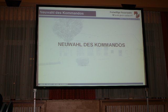 Bei der anschließenden Neuwahl des Kommandos wurde Erich Knötzl mit 40 von 47 Stimmen zum neuen Kommandanten und Bernhard Leitgeb mit 26 von 47 Stimmen (Kandidat Christian Sustr erhielt 20 Stimmen) zum neuen Kommandant-Stellvertreter gewählt und angelobt. Zum neuen Verwalter wurde vom neugewählten Kommandanten Christian Sustr bestellt.