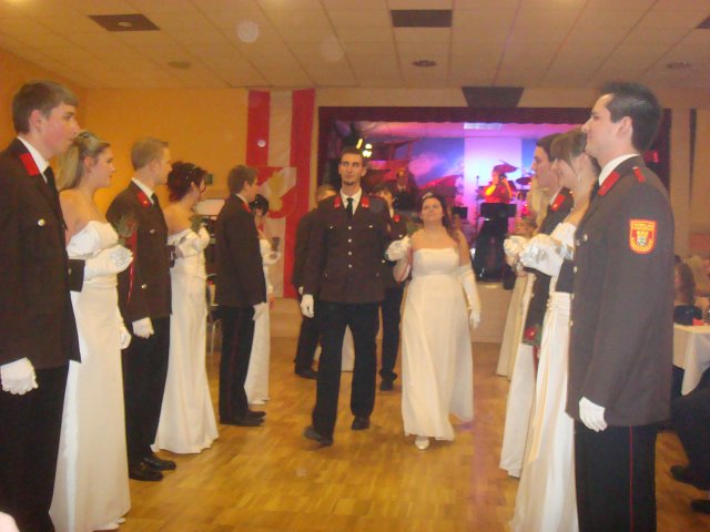 Nach der Polonaise begrüßte erstmals der neue Kommandant OBI Erich Knötzl die zahlreich erschienenen Festgäste. Danach eröffnete Knötzl den Ball und lud zum Tanz. Dieser Aufforderung wurde Folge geleistet und so wurde bei guter Stimmung sehr viel getanzt und gefeiert. Mit ein Grund für die tolle Atmosphäre waren sicher auch die Musik von der Band "Die Feistritztaler" aus dem Wechselland.