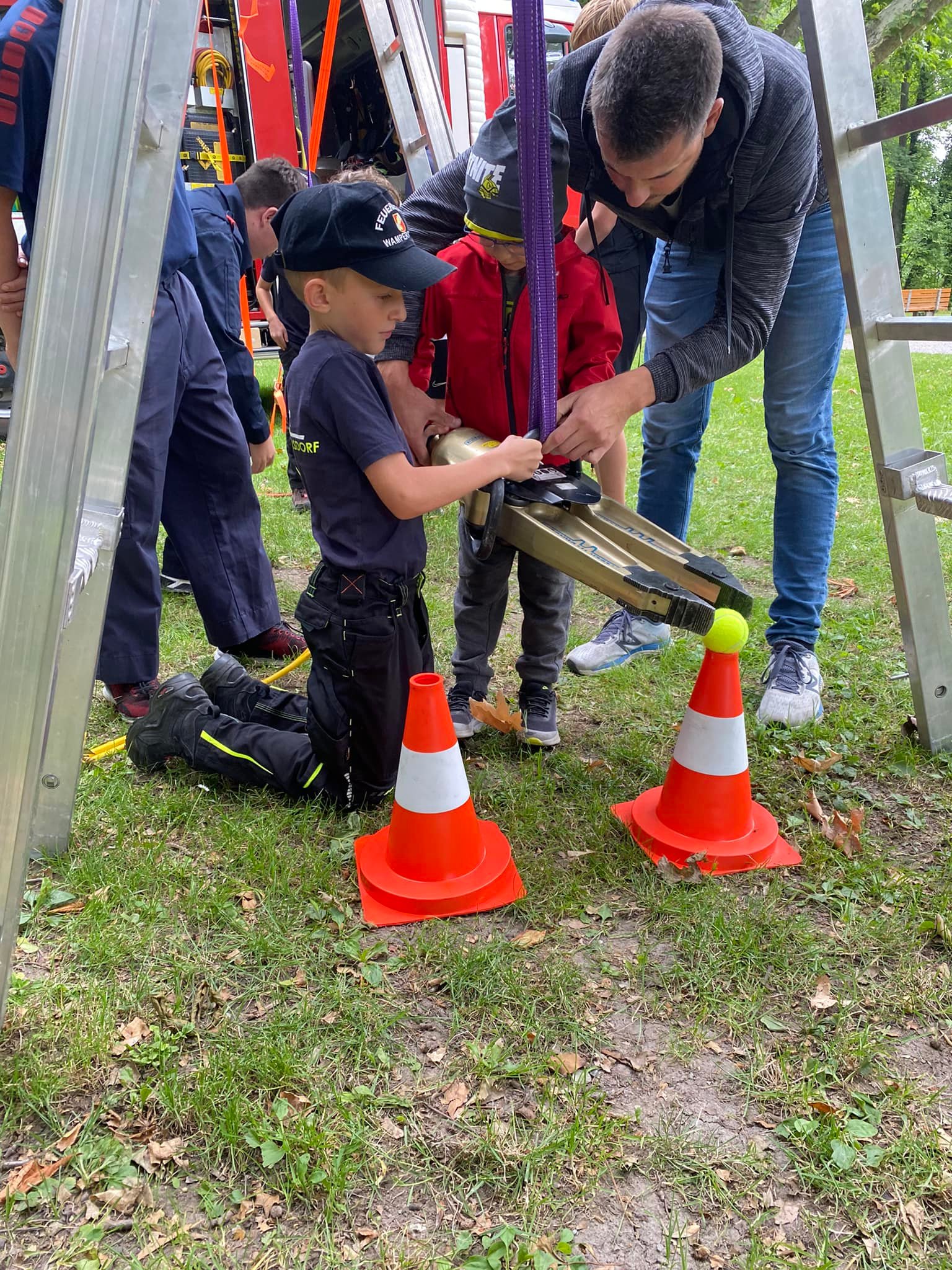 Viele Kinder ließen sich die schweren Geräte, welche im Ernstfall Leben retten, von unseren Jugendfeuerwehrmänner erklären und konnten gleichzeitig die Handhabung ausprobieren.