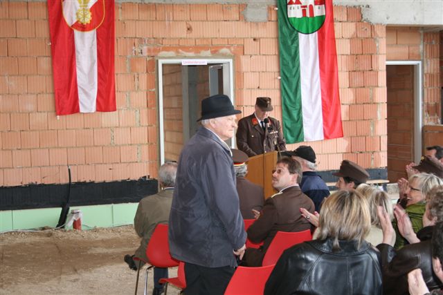 Nach der Rede von Kommandant Leitgeb wurde die Baustelle vom Wampersdorfer Pfarrer Feuerwehrkurat Mag. Wilfried Wallner gesegnet.