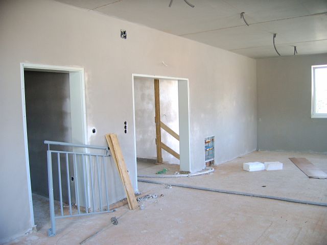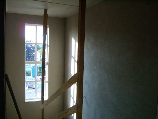 Juni 2008: Verputz innen In den ersten beiden Juniwochen wurden sämtliche Räume des Mannschaftsgebäudes sowie in der Fahrzeughalle die Werkstätten und die Wand zum Mannschaftsgebäude verputzt. Zurück Weiter