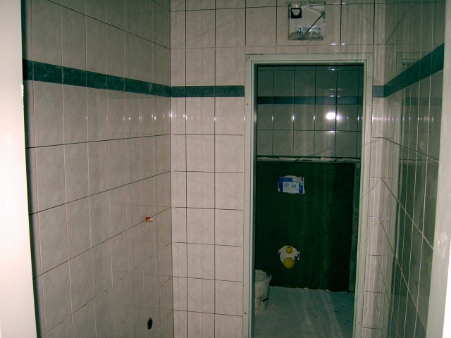 August/Sept. 2008: Verfliesung Sanitärräume In der dritten Augustwoche wurden die Wände der Sanitärräume im Mannschaftsgebäude verfliest. Im September wurden die Verfliesarbeiten fertiggestellt. Die Installateurvorarbeiten wurden bereits im Mai 2008 abgeschlossen. Zurück Weiter
