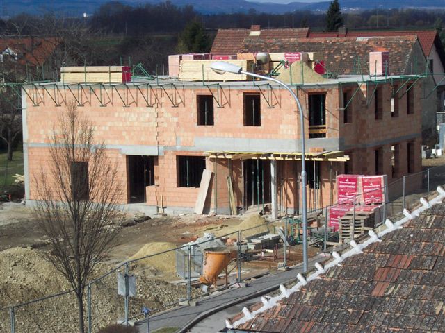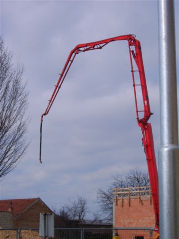 In der letzten Februar-Woche 2008 wurde die Decke auf das Obergeschoß des Mannschaftsgebäudes gesetzt. Es wurde wie bei der Decke des Erdgeschoßes eine 5cm Elementdecke mit 15cm Aufbeton verbaut.