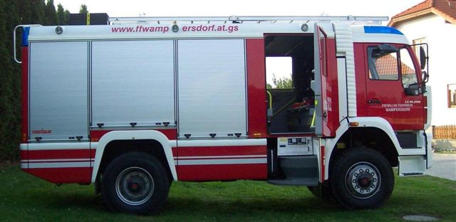 Sie haben die Türe zum Mannschaftsraum geöffnet. Sie können nun den Mannschaftsraum genauer erkunden, indem Sie auf den Mannschaftsraum oder auf den entsprechenden Link unter dem Foto klicken. Sie können auch die Türe zur Fahrerkabine bzw. jede der drei Rollos öffnen, indem Sie auf den jeweiligen Bereich im Foto oder auf den entsprechenden Link unter dem Foto klicken. Sie können aber auch auf das Dach wechseln, indem Sie auf das Dach oder auf den Link unter dem Foto klicken.