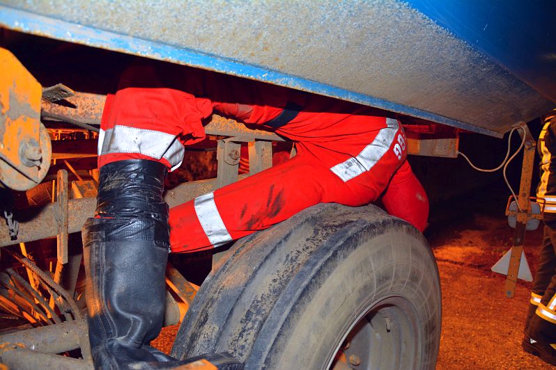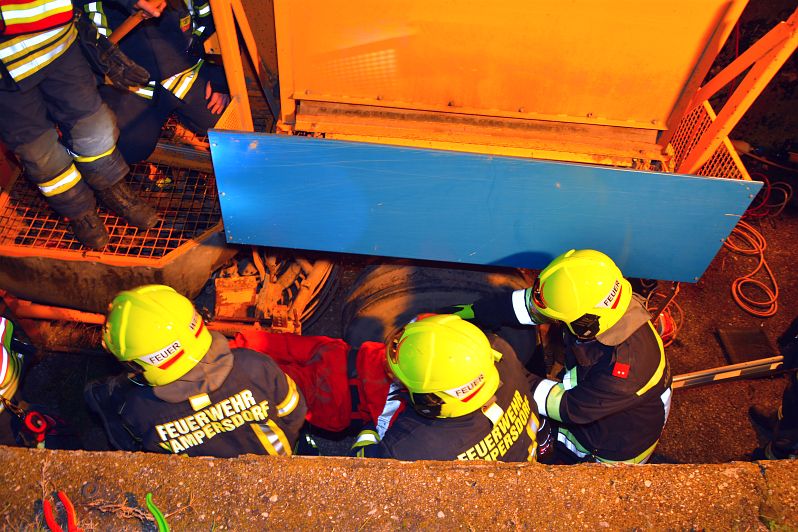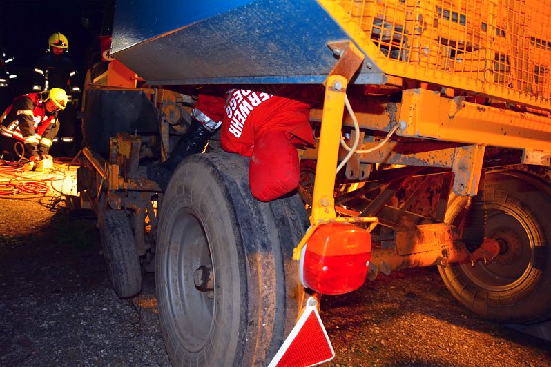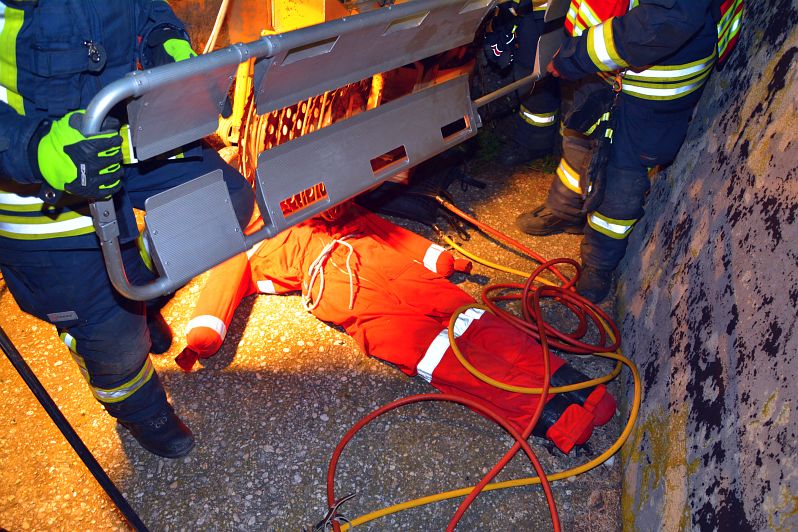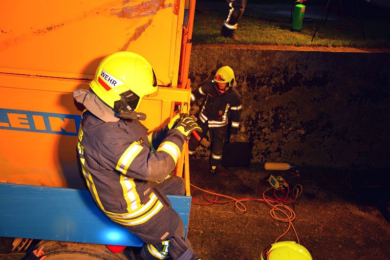 Der Übungseinsatzleiter holte sich nach seiner Erkundung einen fachlich versierten Kameraden zu Hilfe um die optimale bzw. schnellstmögliche Rettung planen zu können. Mit dessen Expertise konnten die Personen mittels hydraulischer Rettungszylinder bzw. Hebekissen erfolgreich gerettet werden. Neben der Personenrettung wurde im Standardablauf bei solchen Übungen bzw. Einsätzen eine entsprechende Beleuchtung und ein Brandschutz aufgebaut. Weiters wurden die landwirtschaftliche Maschine entsprechend gesichert.