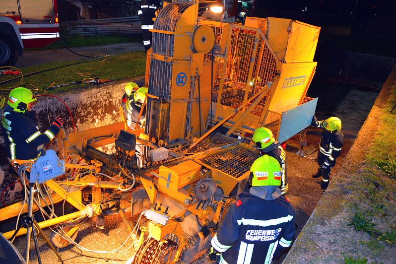 Dieses Mal stand die technische Personenrettung unter einem besonderen Schwerpunkt, nämlich in Form einer landwirtschatlichen Nutzmaschine. Zwei massiv eingeklemmte Personen nach einem Arbeitsunfall galt es zu retten.