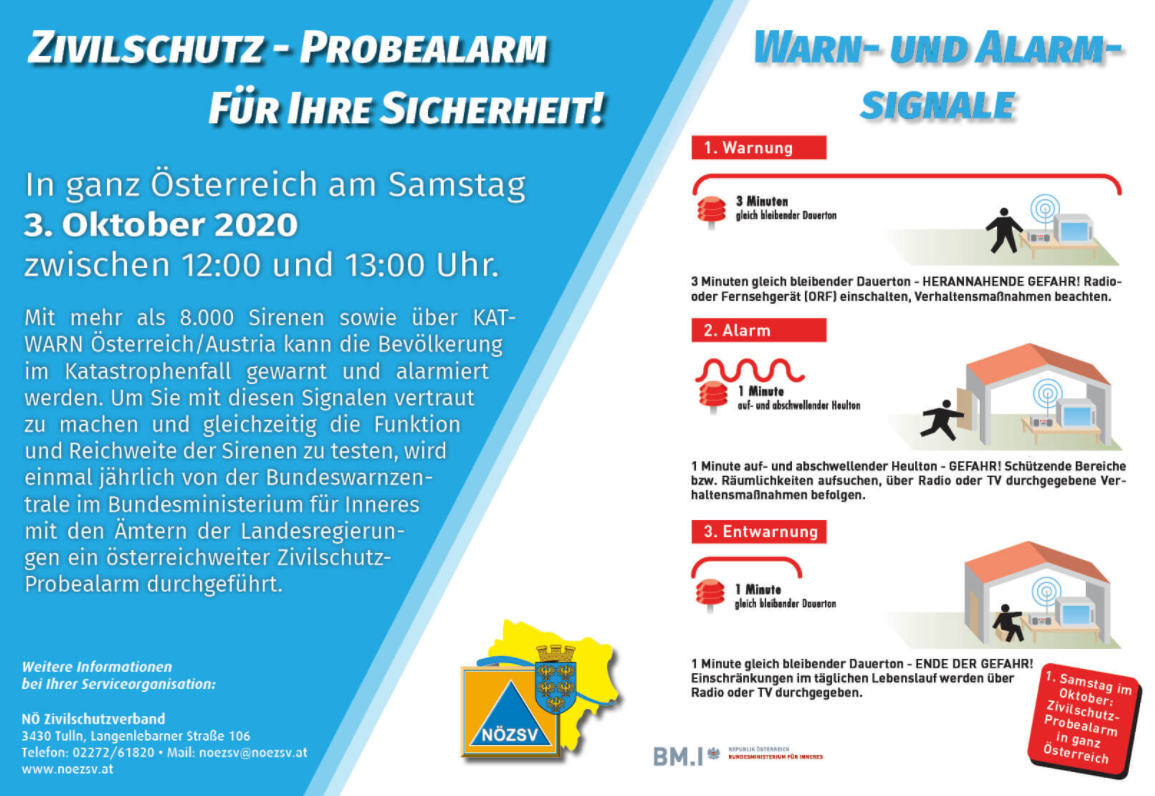 Zivilschutz-Probealarm am 3. Oktober 2020
