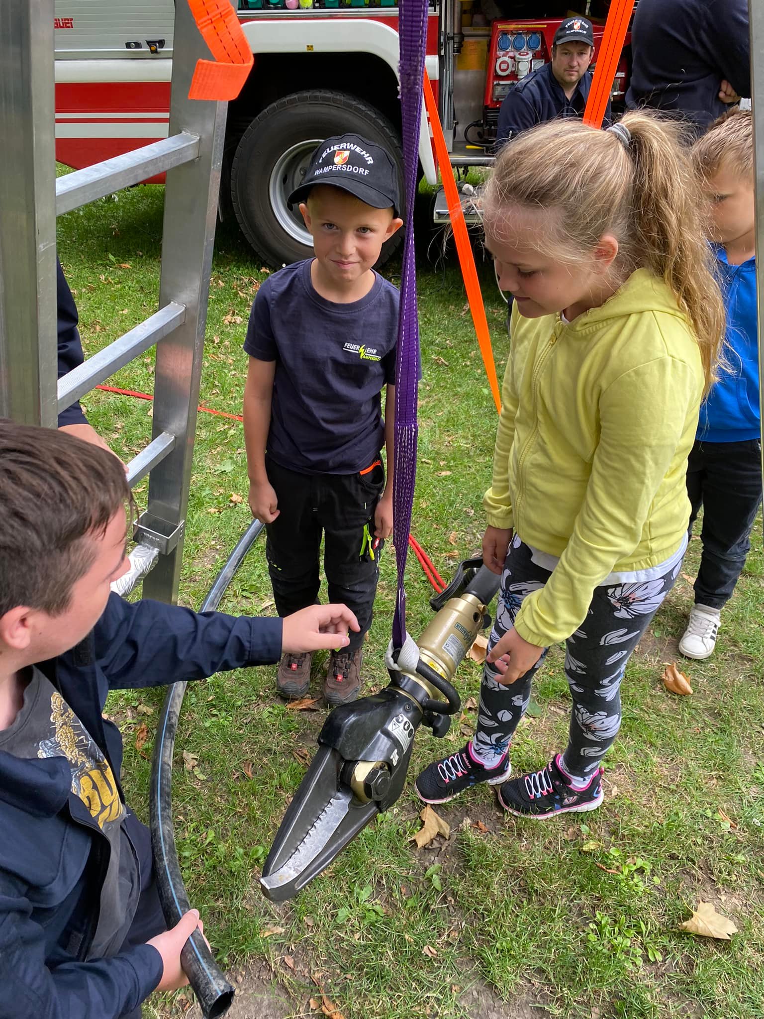 Viele Kinder ließen sich die schweren Geräte, welche im Ernstfall Leben retten, von unseren Jugendfeuerwehrmänner erklären und konnten gleichzeitig die Handhabung ausprobieren.