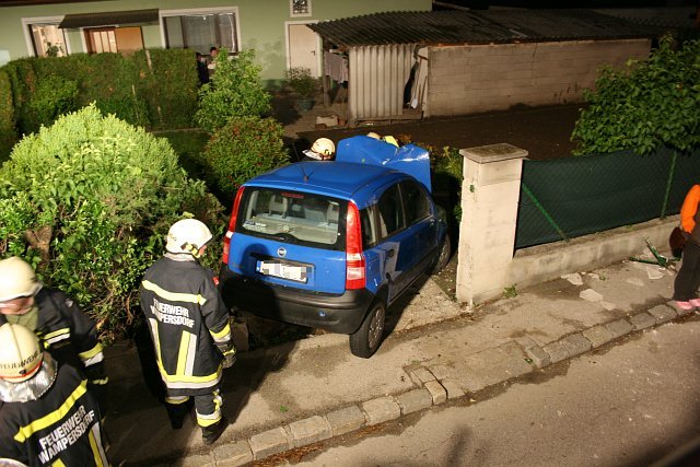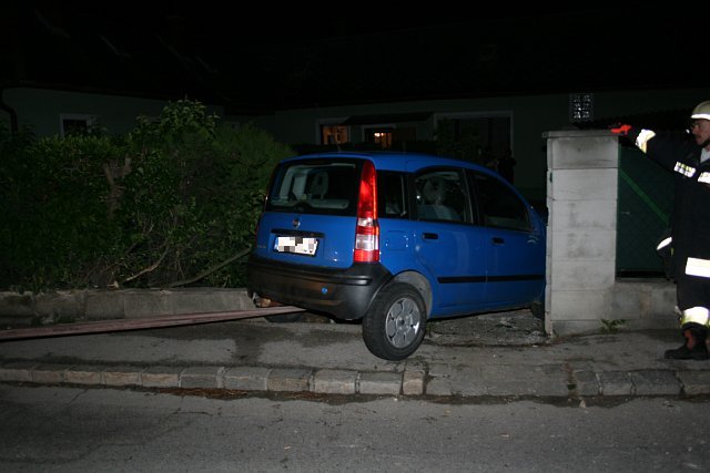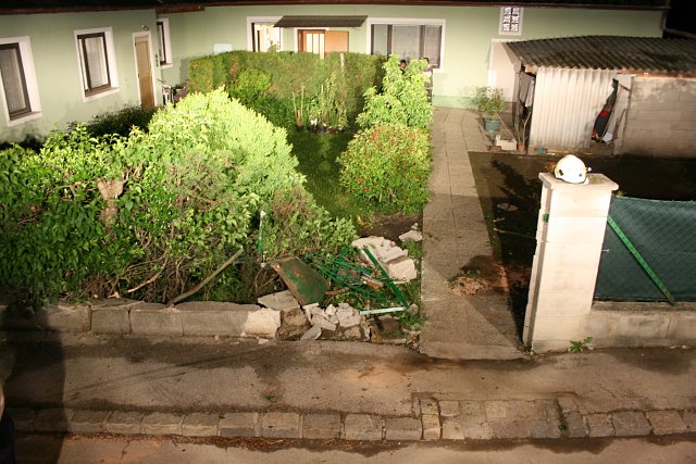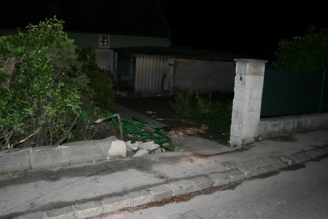Ein PKW-Lenker hat aus ungeklärter Ursache die Herrschaft über seinen Fiat verloren, durchstieß in weiterer Folge einen mit Betonsäulen befestigten Gartenzaun und kam im Garten des betroffenen Grundstückes zum Stillstand.