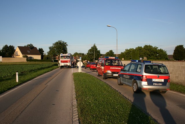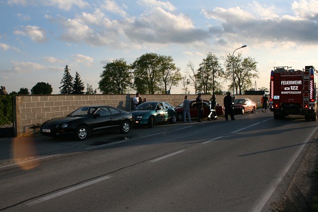 Wenige Minuten vor der offiziellen Eröffnung des 13. Wampersdorfer Feuerwehrfestes wurde die Feuerwehr Wampersdorf zu einem Verkehrsunfall auf die L 4047 Richtung Pottendorf (Höhe Friedhof) alarmiert. Sofort nach der Alarmierung konnte eine Einsatzreservemannschaft von den Festtätigkeiten abgezogen werden. Die Mannschaft rückte unverzüglich mit drei Fahrzeugen zum Einsatzort auf.