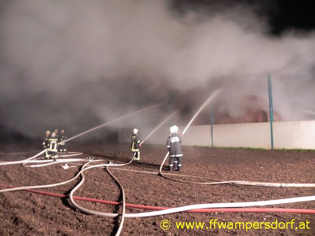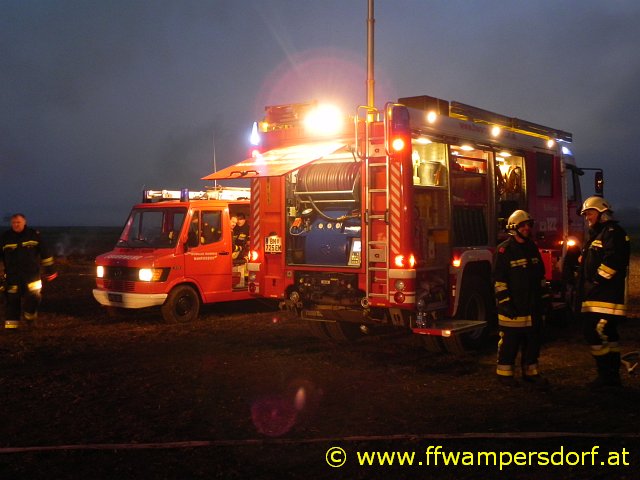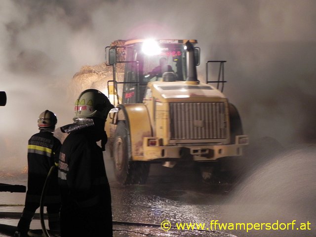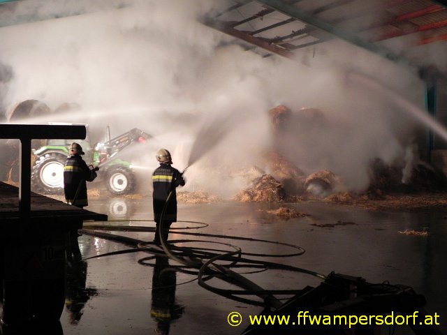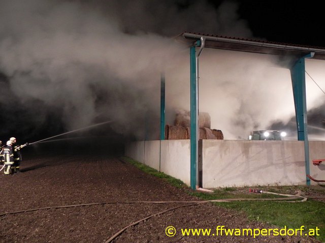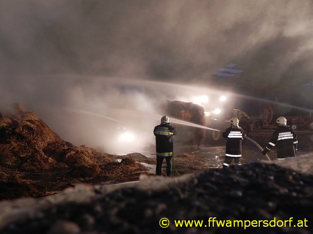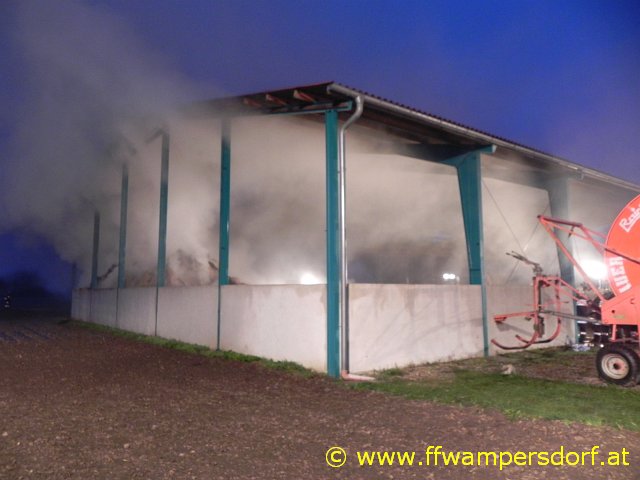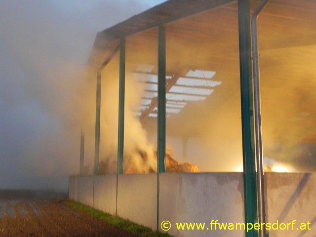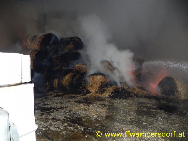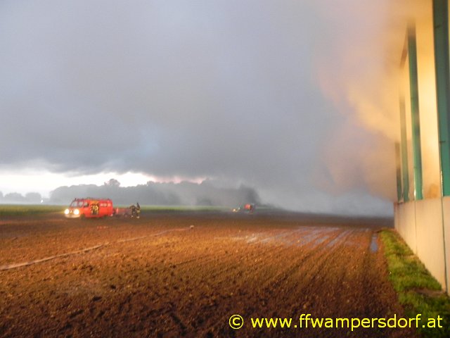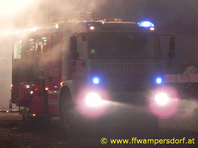 Schon bei der Anfahrt zum Einsatzort war eine enorme Rauchentwicklung sichtbar. Die Feuerwehr Wampersdorf bekam vom örtlichen Einsatzleiter der Feuerwehr Deutsch Brodersdorf den Einsatzbefehl zur Brandbekämpfung mit mehreren C-Rohren.