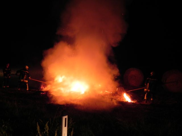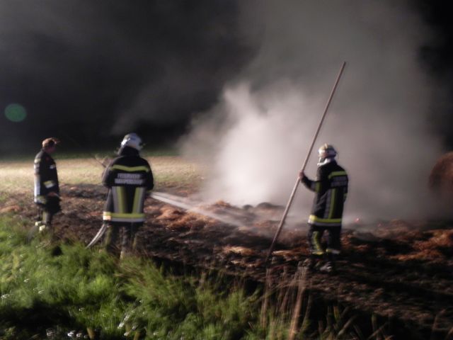 In der Folge ließ man die Ballen kontrolliert abbrennen. Zum Schluss wurden noch die Glutnester abgelöscht, sodass keine Wiederentzündungsgefahr mehr bestand. Nach ca. 1,25 Stunden konnte ins Feuerwehrhaus eingerückt und die Einsatzbereitschaft wieder hergestellt werden.