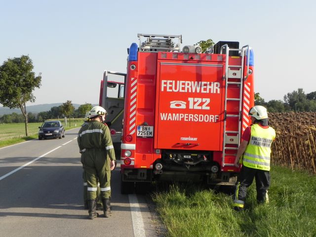 Am Donnerstag, dem 25.08.2011 wurde die FF Wampersdorf zu einer Fahrzeugbergung auf die B16 Richtung Weigelsdorf, Höhe Eisenbahnkreuzung Pottendorfer Linie, alarmiert.
