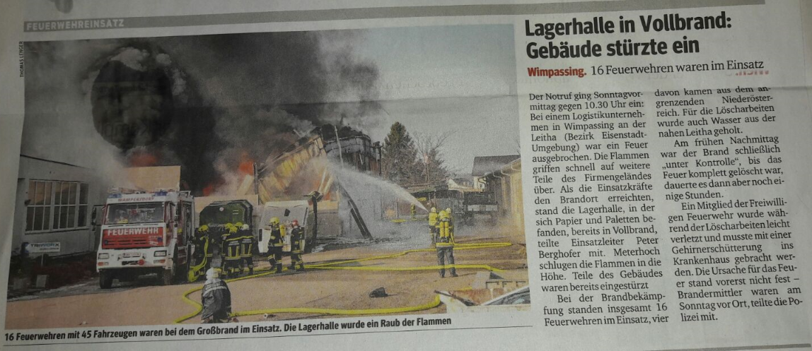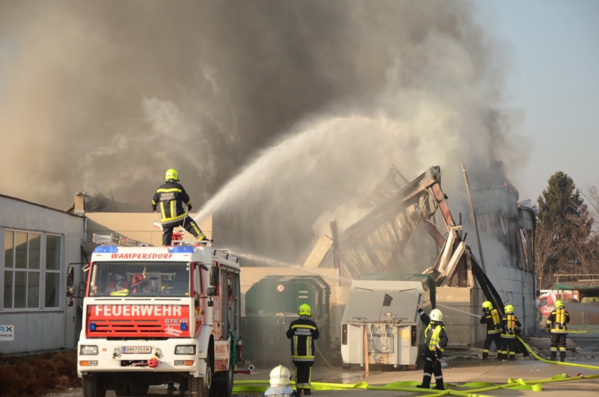 WIMPASSING (ft). Nach dem Großbrand in einem Logistikunternehmen am Sonntag in Wimpassing scheint die Ursache nun bekannt: Laut den Brandermittlern der Polizei soll eine erhitzte Wasserleitung das Feuer entfacht haben.