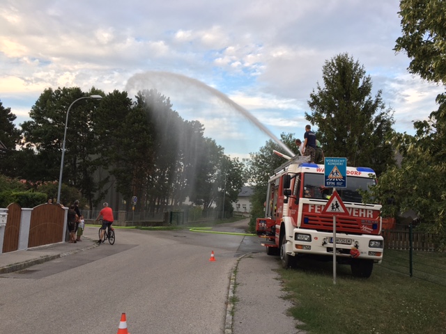 So auch am Mittwoch, dem 02.08.2017. Aufgrund der anhaltenden Hitzewelle wurden zugleich die Grünflächen des Kinderspielplatzes sowie des Kindergartens bewässert.