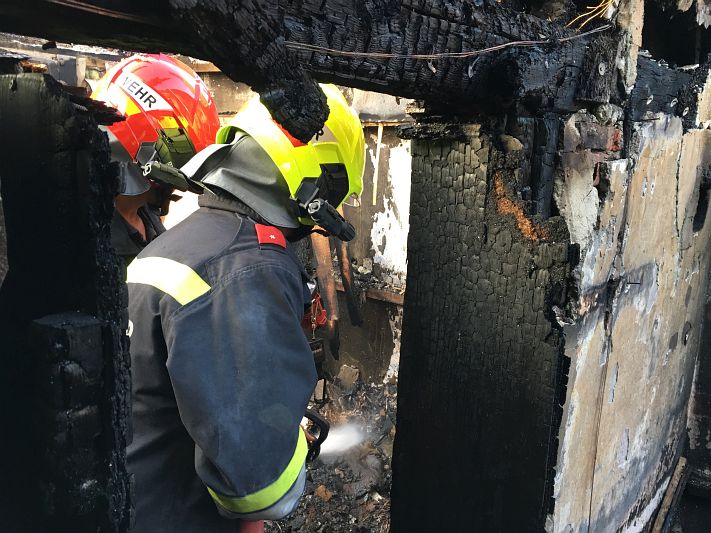 Binnen weniger Minuten konnten noch einige Glutnester ausfindig gemacht werden. Unter Vornahme einer Löschleitung konnten die Glutnester rasch abgelöscht werden.