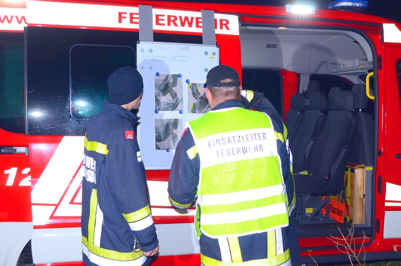 Nach der Alarmierung der Feuerwehr durch die Bezirksalarmzentrale (BAZ) Baden gegen 18:30 Uhr wurde vor Ausrücken noch im Feuerwehrhaus eine Lagebesprechung durchgeführt.
