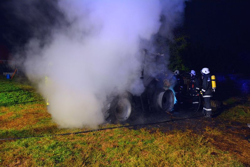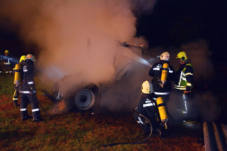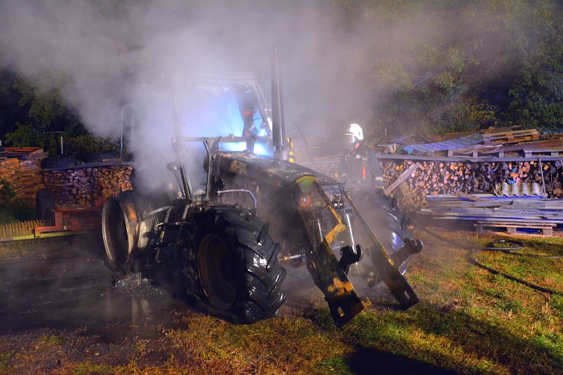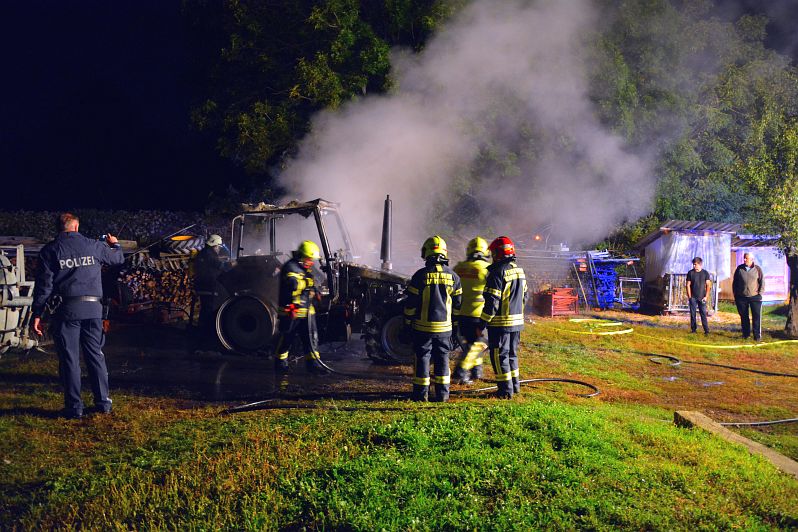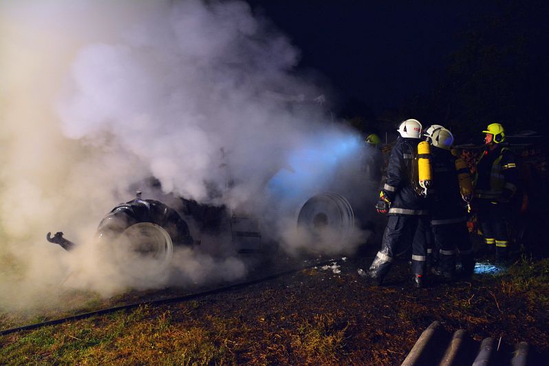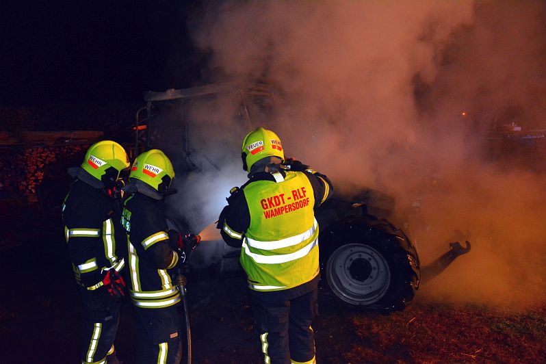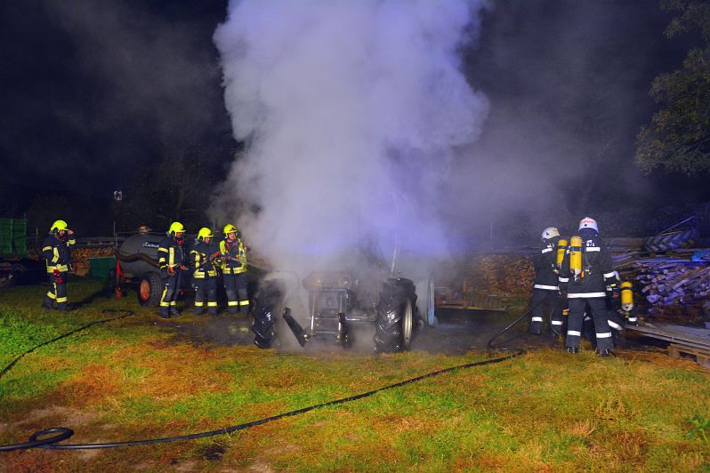Aus unbekannter Ursache geriet ein Traktor der Marke Deutz in Brand. Als das Tanklöschfahrzeug der Feuerwehr Wimpassing vor Ort eintraf, stand der komplette Traktor in Vollbrand. Es befand sich niemand im Fahrzeug. Umgehend wurde vom Tanklöschfahrzeug der FF Wimpassing sowie vom Rüstlöschfahrzeug der FF Wampersdorf eine Schnellangriffs-Löschleitung unter Atemschutz zur Brandbekämpfung vorgenommen.