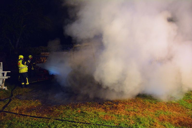 Nur kurze Zeit später trafen auch die nachrückenden Fahrzeuge ( Löschfahrzeug, Kleinlöschfahrzeug und Mannschaftstransportfahrzeug) ein und unterstützte die Löscharbeiten.