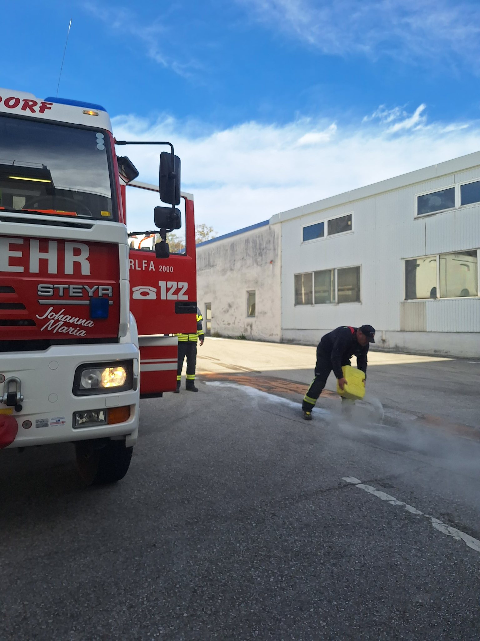 Am frühen Nachmittag des 23. Oktober 2025 wurde die Feuerwehr Wampersdorf zu einem "S1-Austritt von Betriebsmitteln, LKW verliert Diesel" alarmiert.