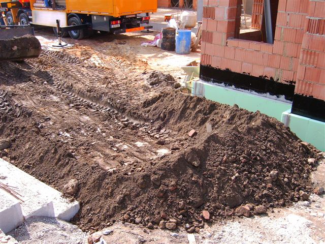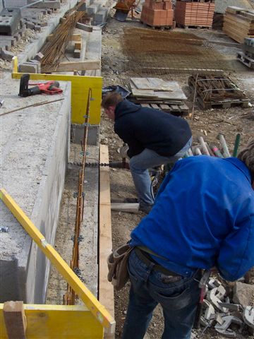 In den letzten Märztagen 2008 wurde der Platz vor der Fahrzeughalle planiert. Außerdem wurden noch noch Kanal- und andere Rohre verlegt und das Fundament für den Zaun hinter dem Mannschaftsgebäude gegossen. Das Wartehäuschen der Busstation wurde neu angeliefert - es war ja seit einem Verkehrsunfall Ende 2007 beschädigt - und auf einem in das Grundstück hineinversetzte Plateu montiert. In den ersten beiden Aprilwochen wurden die Arbeiten fortgesetzt. Zusätzlich zum Kanal wurden auch Halterungen für die Fahnenmaste mit Beton gegossen.