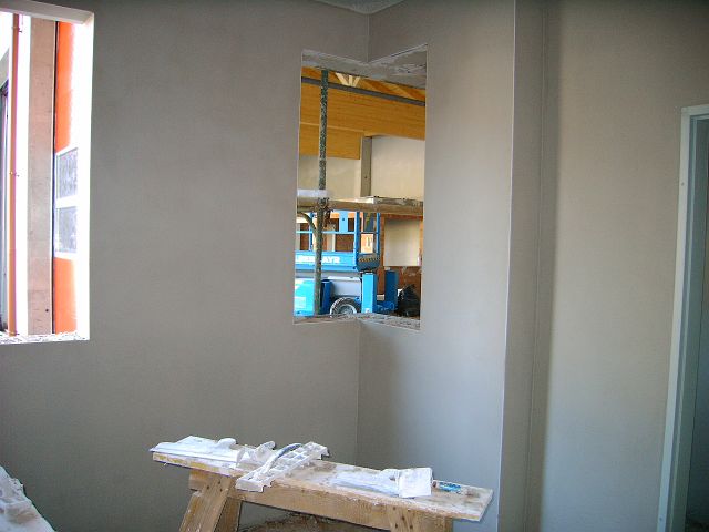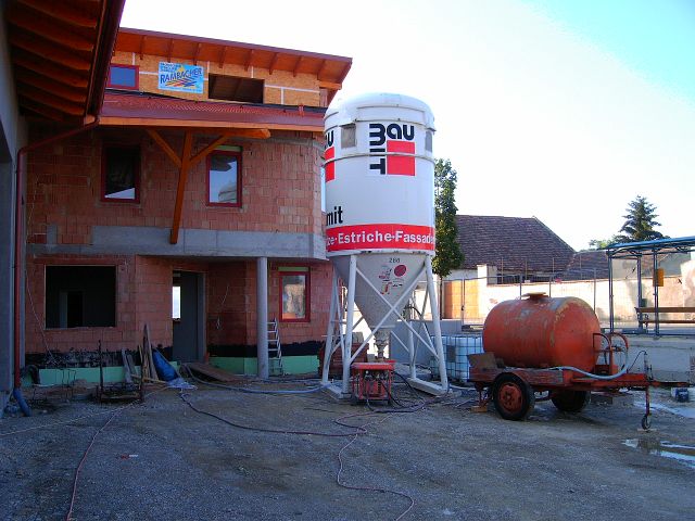 Juni 2008: Verputz innen In den ersten beiden Juniwochen wurden sämtliche Räume des Mannschaftsgebäudes sowie in der Fahrzeughalle die Werkstätten und die Wand zum Mannschaftsgebäude verputzt. Zurück Weiter