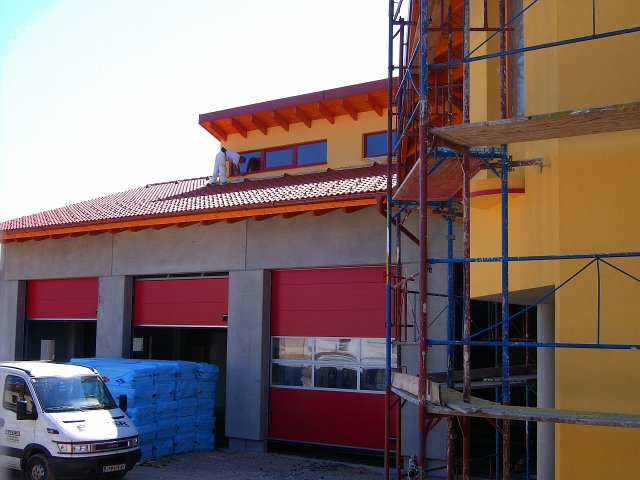 August 2008: Fassade Im August wurde die Fassade gemacht, nachdem die Vorarbeiten im Juni abgeschlossen wurden. Das Wampersdorfer Feuerwehrhaus strahlt jetzt in der Farbe "sonnengelb". Zurück Weiter