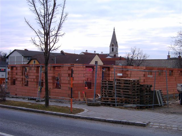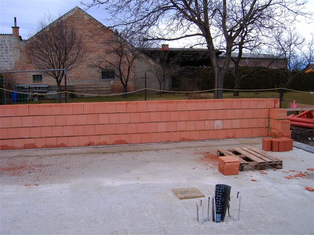 Die Mauerarbeiten für das Mannschaftsgebäude begannen am 18. Jänner 2008 und dauerten bis Ende Jänner. Die tragenden Innen- (25cm) und Außenwände (30cm) wurden mit keramischen Ziegeln ausgeführt. Unter den gemauerten Wänden wurde eine Horizontalisolierung gegen die aufsteigende Feuchtigkeit aufgebracht.