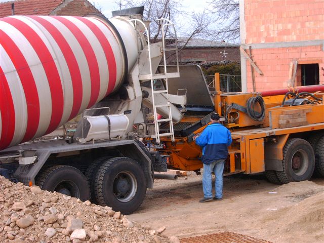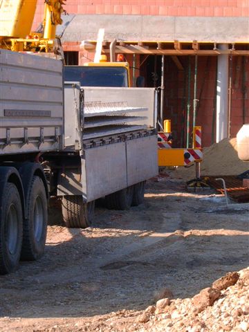 In der letzten Februar-Woche 2008 wurde die Decke auf das Obergeschoß des Mannschaftsgebäudes gesetzt. Es wurde wie bei der Decke des Erdgeschoßes eine 5cm Elementdecke mit 15cm Aufbeton verbaut.