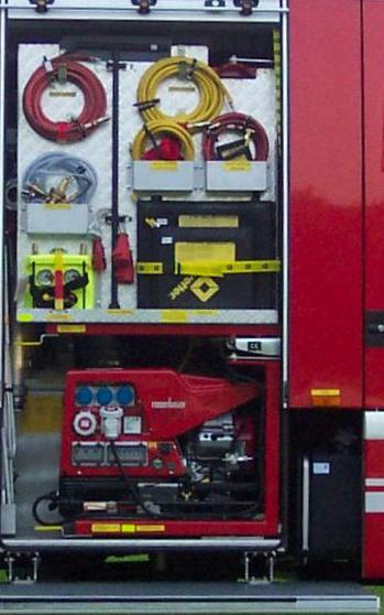 Geräteraum 2 groß ausgeklappt, Hebekissen, Stromaggregat