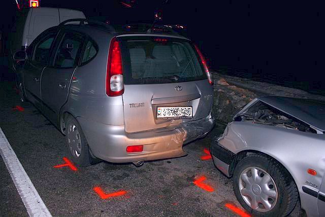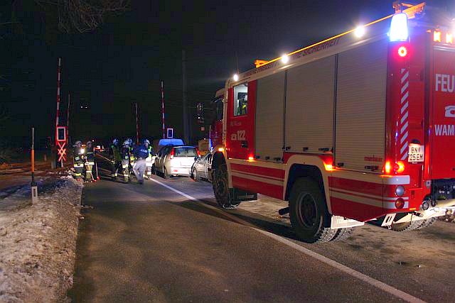 Dabei dürfte dieser drei bereits vor geschlossenen Bahnschranken angehaltene Pkw nicht rechtzeitig gesehen haben und krachte frontal in die Fahrzeugkolonne. Durch die Wucht des Aufpralles wurden die beteiligten Fahrzeuge regelrecht ineinander geschoben.