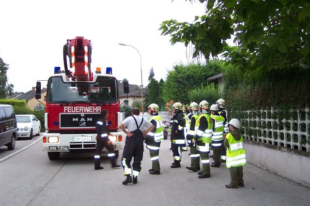 Nach der Eröffnung wurden die Jugendlichen auf die wichtigsten Sicherheitshinweise eingeschult und auch die Fahrzeugkunde wurde aufgefrischt. Am frühen Abend schrillte bereits zum ersten Mal der Pager: Tierrettung in der Weingartenstraße – Katze auf Wohnhausdach. Aufgrund der misslichen Lage des zu rettenden Tieres, wurde der Hubsteiger der FF Pottendorf nachalarmiert. Nachdem dieser am Einsatzort eingetroffen war, konnte die Katze ohne weitere Probleme gerettet werden.