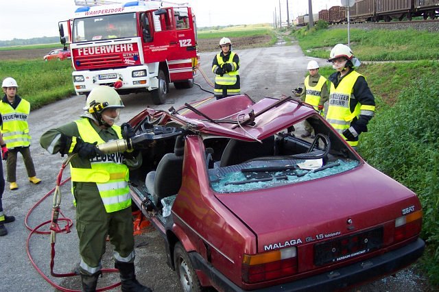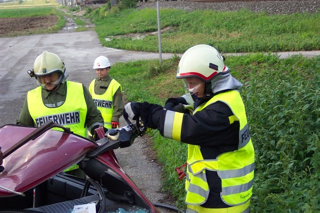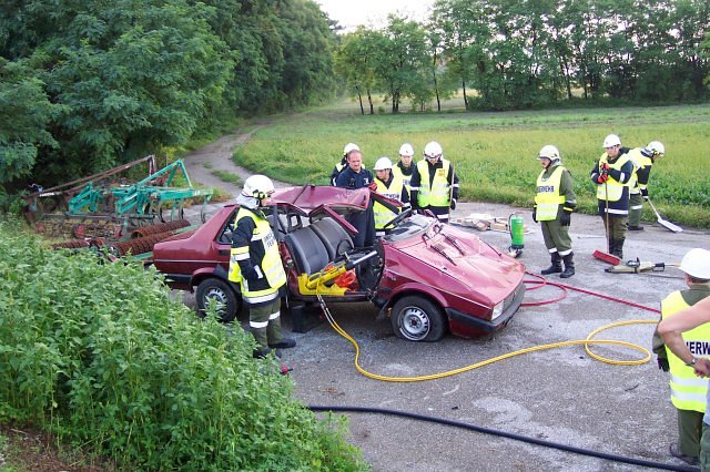 Bereits am frühen Morgen folgte der nächste Alarm und die Jugendlichen wurden aus dem Schlaf gerissen - Verkehrsunfall mit Menschenrettung, so lautete die nächste Alarmierung. An dieser Einsatzübung nahm auch das Rote Kreuz Landegg mit einem RTW teil, welches mit der Jugendfeuerwehr gemeinsam übte.