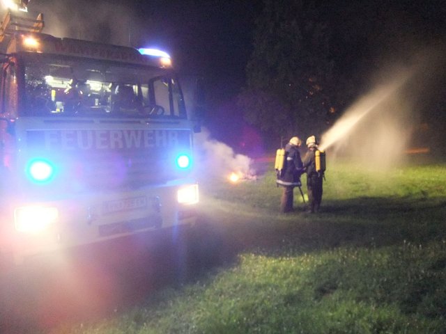 Nachdem die gröbsten Schäden beseitigt waren und die Auspumparbeiten abgeschlossen waren, konnte man sich wieder der Jugend widmen. Gegen 02:00 Früh folgte der Nächste Einsatz – Brandeinsatz beim Friedhof.