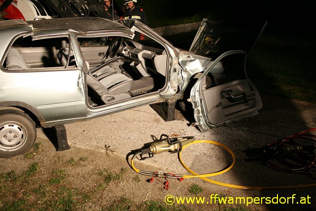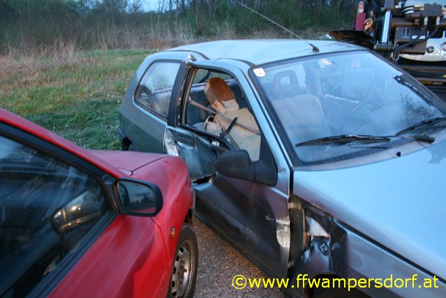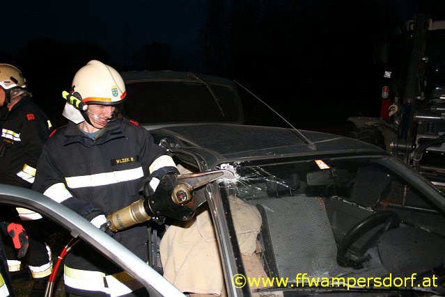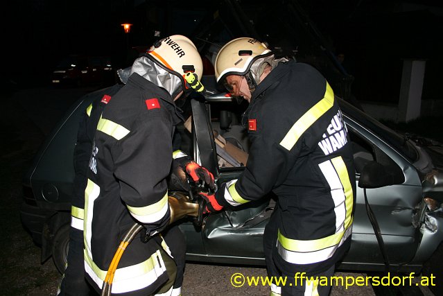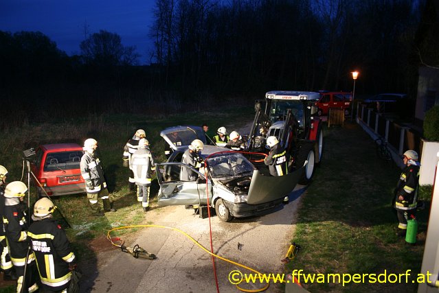 Am Mittwoch, dem 06.04.2011 fand die monatliche Einsatzübung der Freiwilligen Feuerwehr Wampersdorf statt. Ausgangslage dieser Übung war ein Verkehrsunfall mit drei beteiligten Fahrzeugen, wobei im mittleren PKW eine Person im Beinbereich eingeklemmt wurde.