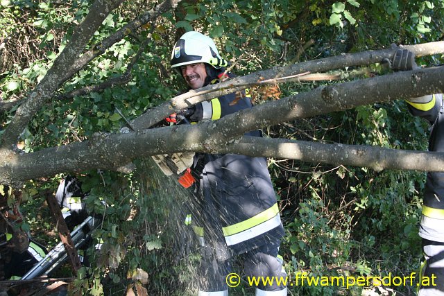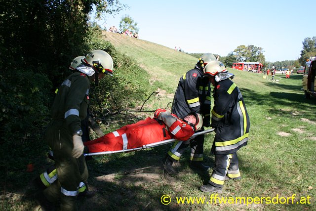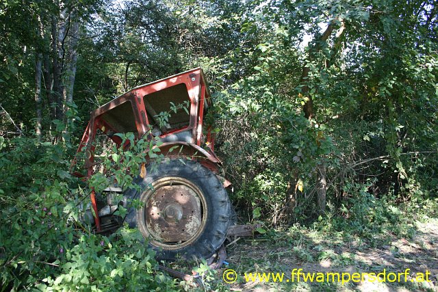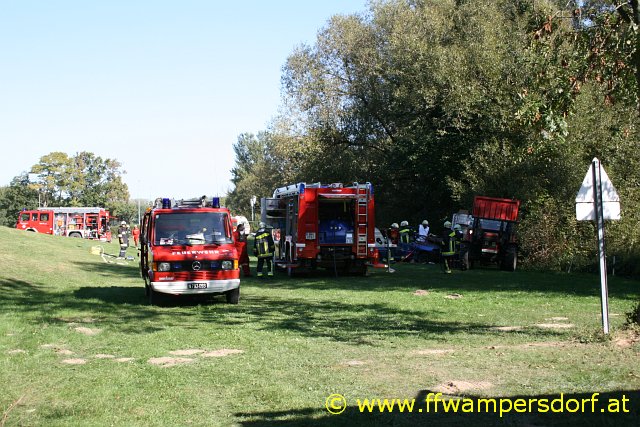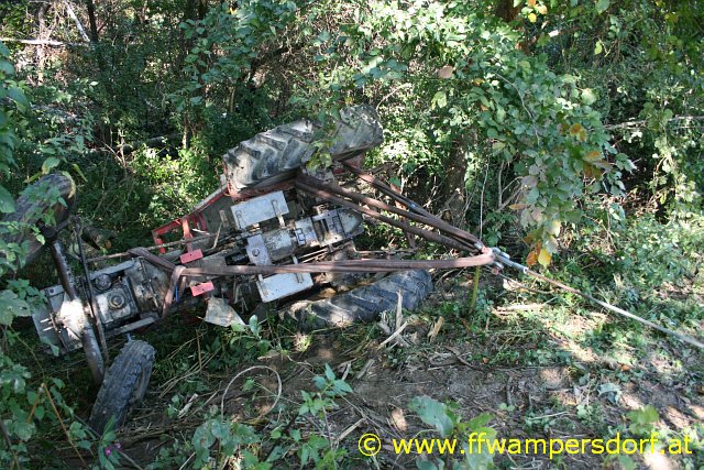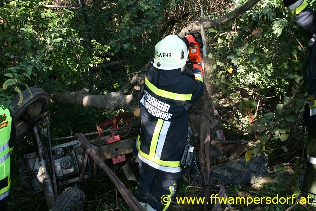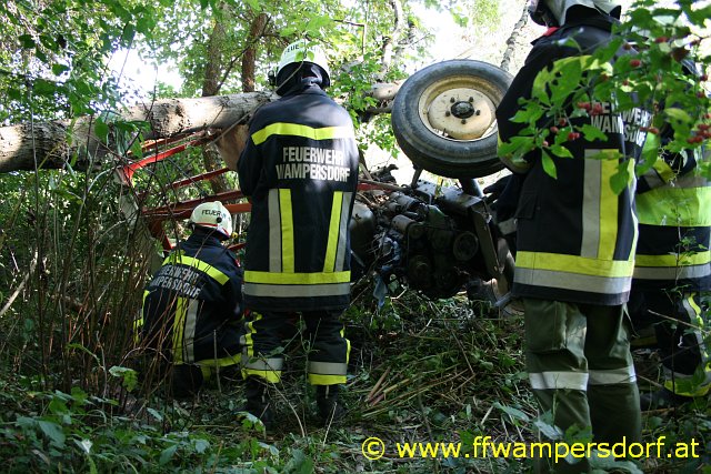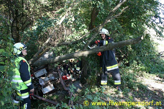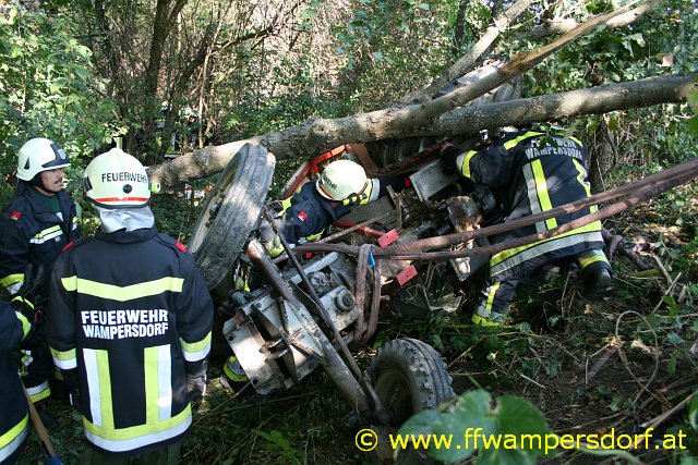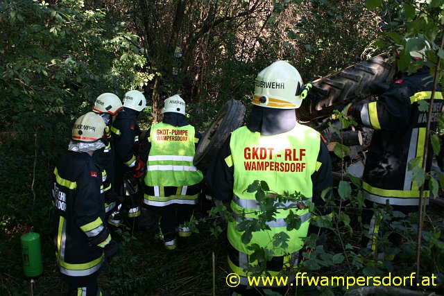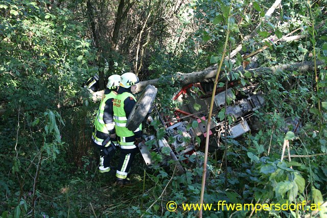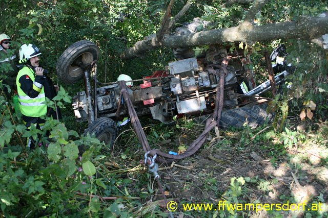 Die Feuerwehr Wampersdorf bekam den Einsatzbefehl zur Menschenrettung aus einem abgestürzten Traktor.