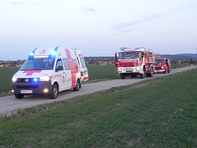 Als Erstmaßnahmen wurde der Verletzte von den Sanitätern des Roten Kreuzes Landegg-Ebenfurth erstversorgt. Die Feuerwehrkräfte begannen indessen, den Pkw zu sichern bzw. die Rettung der zweiten eingeklemmten Person (welche leicht verletzt im Beinbereich unter dem Fahrzeug eingeklemmt war) mittels Hebekissen vorzubereiten.