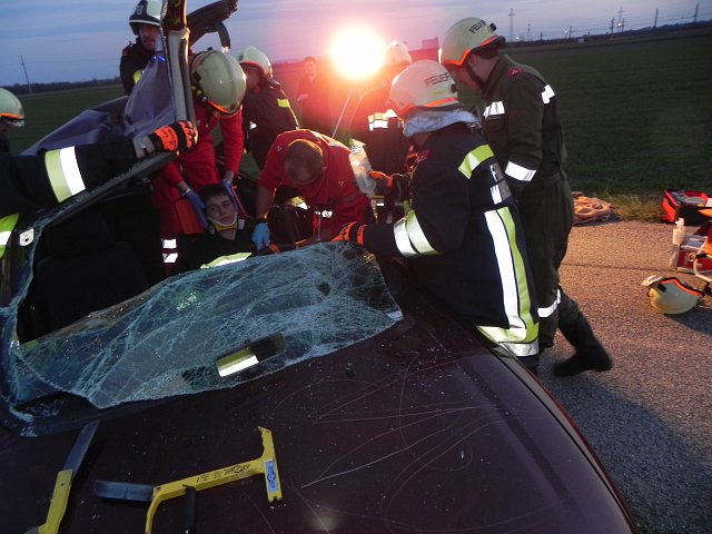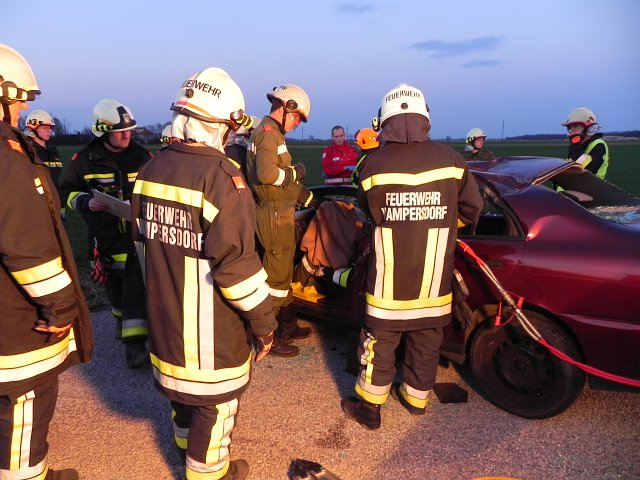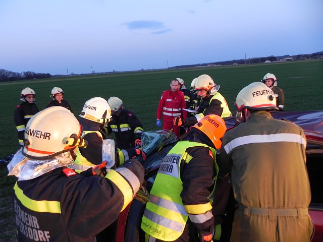 „Verkehrsunfall mit zwei eingeklemmten Personen“ – so lautete die Übungsannahme der Freiwilligen Feuerwehr Wampersdorf am Abend des 03. April 2012.