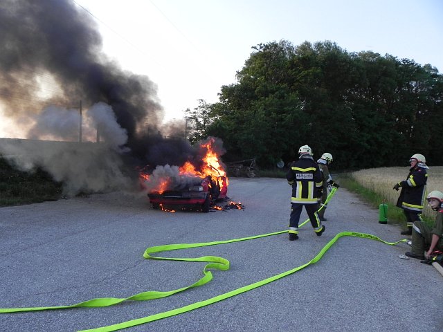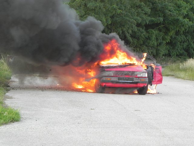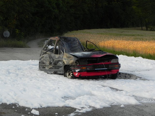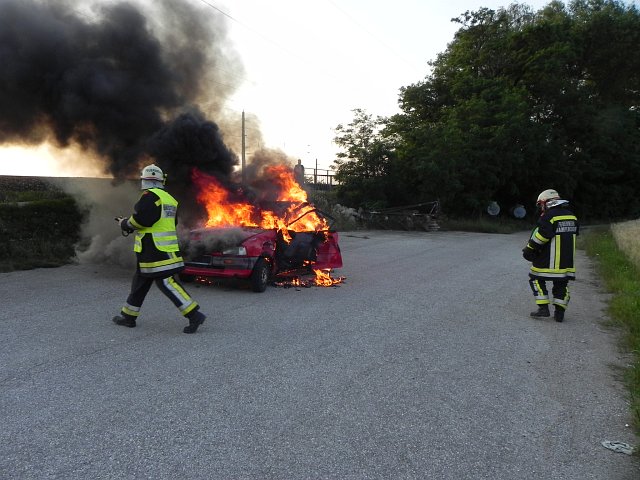 Ein abgestellter PKW, der durch Überhitzung Feuer fing und binnen weniger Minuten in Vollbrand steht, war am Abend des 19. Juni 2012 Thema der monatlichen Einsatzübung.