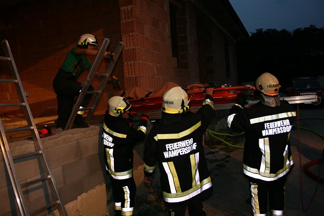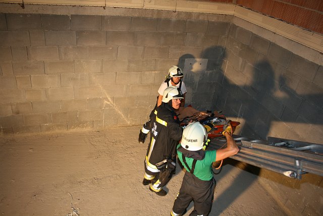 Eine verunfallte Person in einem Hackschnitzelsilo und ein Küchenbrand waren am Abend des 5. September 2012 Thema einer Einsatzübung der Feuerwehr Wampersdorf.