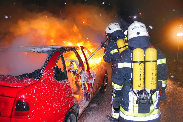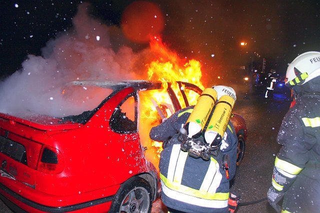 Nach vier Minuten konnte der Atemschutztrupp den Brand trotz starkem Wind unter Kontrolle bringen und zur Gänze ablöschen.