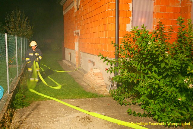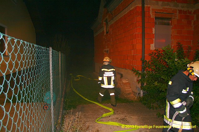 Der Brand in einem Keller eines Einfamilienhauses war am Abend des 08. Oktober 2013 Ausgangslage für eine Einsatzübung der Feuerwehr Wampersdorf.
