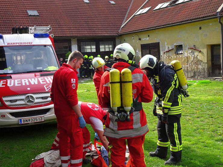 Feuerwehr Wampersdorf mit RLFA 2000, LF, KLF, MTF und 15 Mann