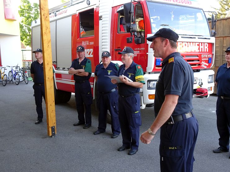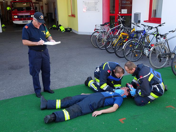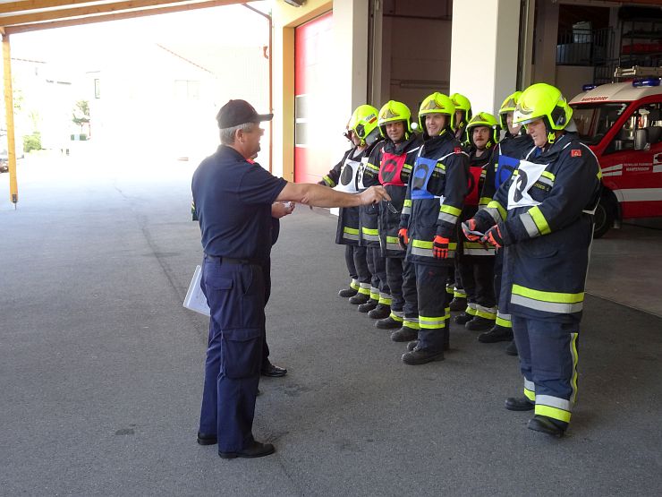 Die eigentliche Ausbildungsprüfung absolvierten die Feuerwehrmitglieder mit Bravour, sodass der Hauptprüfer Helmut Pischem das positive Ergebnis im Anschluss verkünden konnte