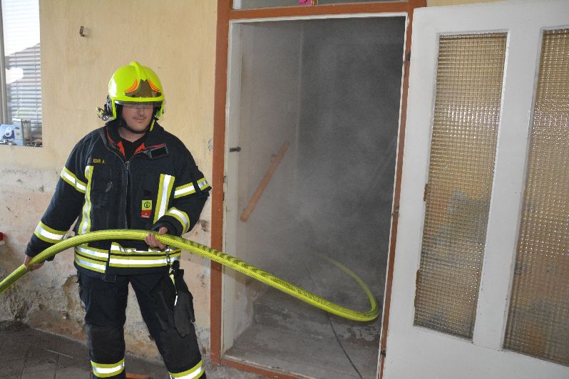 Für die Übung angenommen wurde ein durch den Anrufer gemeldeter Zimmerbrand mit einer vermissten Person. Die Räumlichkeiten wurden mit der Nebelmaschine verqualmt. Die Hand vor den Augen zu sehen war bereits eine Schwierigkeit, die Orientierung für die Einsatzkräfte somit eine noch größere.
