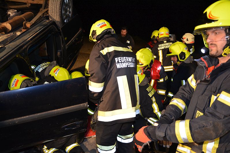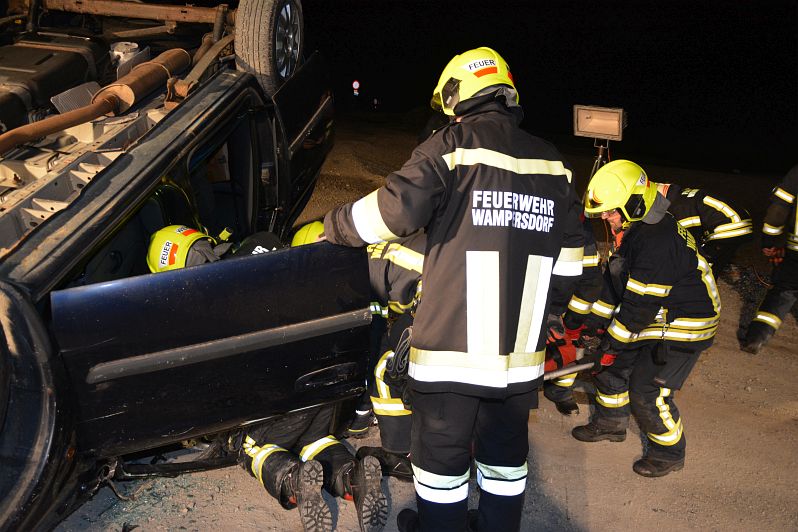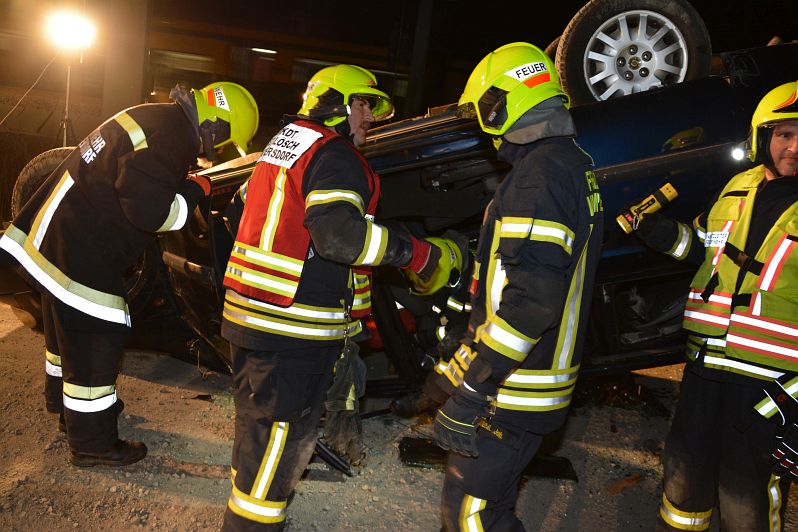 Personen, die in einem auf dem Dach liegenden PKW eingeklemmt sind, waren am Abend des 20.03.2024 Thema der monatlichen Einsatzübung.